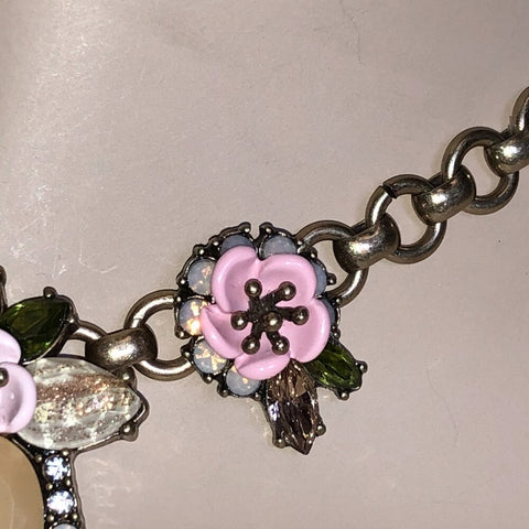 The Chloe + Isabel Femme des Fleurs Collar Necklace is a romantic statement piece inspired by a blooming garden in spring. Designed with an intricate floral motif, this collar necklace features soft pink enamel flowers, faceted pastel stones, and shimmering crystal accents that create beautiful depth, color, and sparkle.