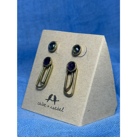 These Chloe + Isabel convertible earrings feature faceted gemstone studs paired with removable modern gold-tone drop accents. Wear as minimalist studs or bold statement earrings for effortless day-to-night styling.