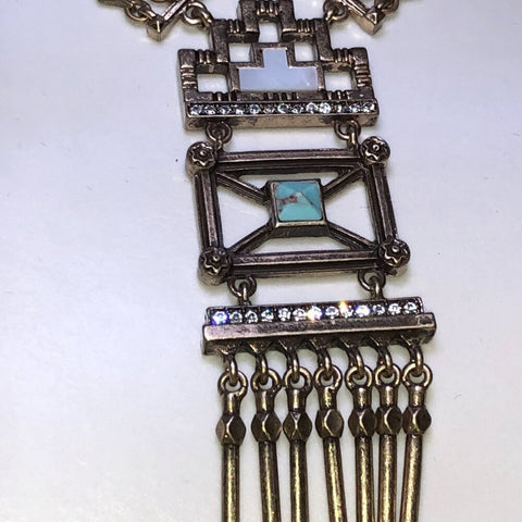 CHLOE + ISABEL geometric turquoise lariat statement necklace - N089