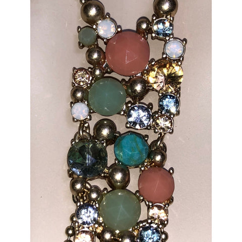 The Mosaic Convertible Pendant Necklace by Chloe & Isabel blends modern versatility with artisan craftsmanship. This elegant piece features a vibrant cluster of faceted stones in soft coral, turquoise, mint, and opalescent hues, accentuated with delicate crystal sparkle.