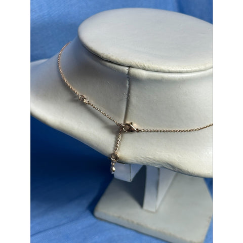 This Chloe + Isabel rose gold necklace features a delicate pendant with a glowing opal-style gemstone accented by a sparkling crystal drop. Its minimalist design makes it perfect for layering or wearing alone for a soft, elegant look.