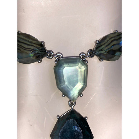 Inspired by Parisian elegance and the opulence of vintage jewelry, the Rue Royale Convertible Necklace is a true statement of sophistication. Featuring faceted glass and abalone-inspired stones in deep oceanic hues of midnight blue, teal, and iridescent green, this versatile piece captures light beautifully from every angle. The design blends old-world glamour with modern versatility — allowing you to wear it as a statement collar or as a more delicate layered look when converted.