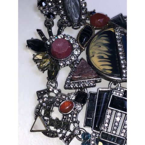 Featuring a mix of earthy tones, bold geometry, and luminous textures, this statement necklace evokes the untamed elegance of the wild with modern sophistication. Finished in antique silver plating and suspended from a chunky chain, the Serengeti Necklace is a true showpiece for confident, expressive style.