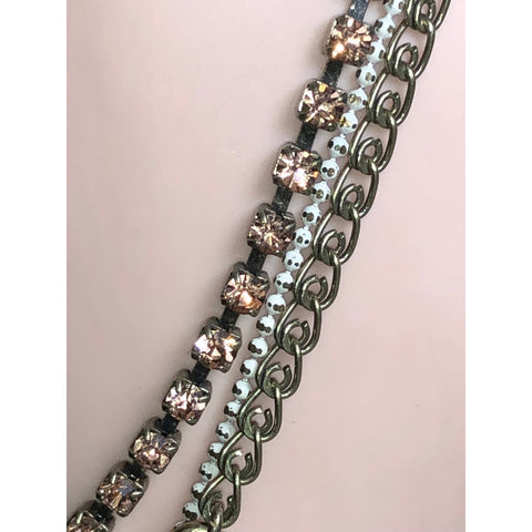 Earthy elegance meets modern edge in this Multi-Chain Amazonite Geo Stone Bracelet. Featuring a soft aqua-toned, faceted geometric stone framed in antique gold, this bracelet blends natural beauty with contemporary styling. A trio of mixed chains — including shimmering crystal cupchain, textured links, and a sleek metallic strand — wraps the wrist with effortless bohemian charm.