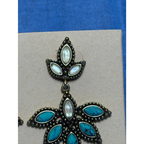Make a statement with these stunning Chloe + Isabel drop earrings, designed with a bold mix of turquoise blue, opalescent white, and fuchsia pink stones. Set in a detailed vintage silver-tone metal, these earrings showcase an intricate floral-inspired design with elegant dangling accents for beautiful movement.