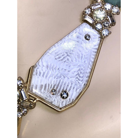 Set in a gold-tone frame, this necklace blends natural inspiration with modern elegance, making it the perfect piece to elevate both everyday wear and formal looks. With its structured design and organic stone pattern, this necklace creates a look that is both calming and powerful.