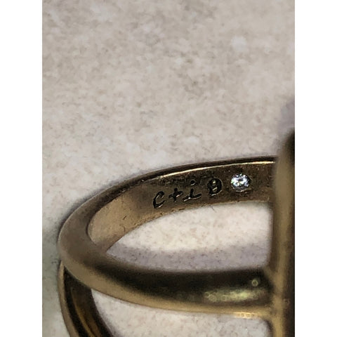The architectural double-band design adds dimension and visual interest while keeping the ring comfortable and wearable. Perfect as a standalone statement or paired with coordinating gold jewelry, this ring effortlessly elevates both casual and dressy looks.