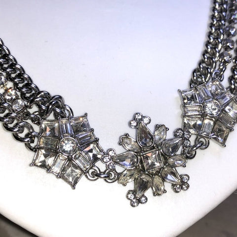 Refined, radiant, and timelessly glamorous, the Frosted Crystal Cascade Collar Necklace brings stunning sophistication to any neckline. This beautifully structured design features three rows of shimmering mixed chains—a strand of brilliant pavé crystals framed by bold silver-tone curb links for a chic, modern edge.