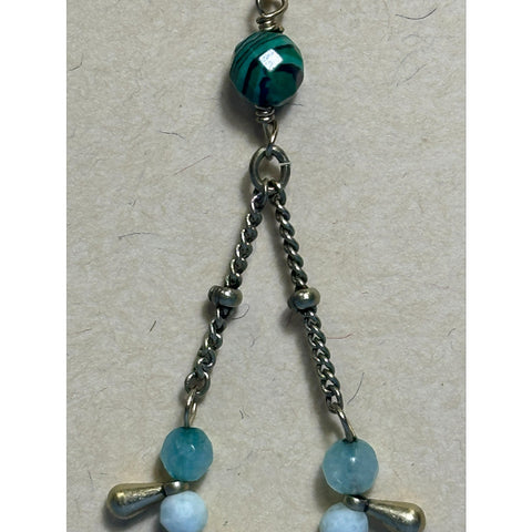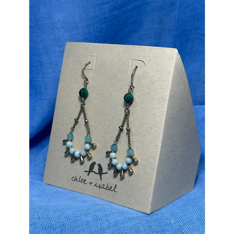 Channel effortless bohemian elegance with the Chloe + Isabel Mystic Mandala Chandelier Drop Earrings. These beautifully balanced earrings feature layered chain drops accented with soft aqua beads, polished metal details, and a striking green stone at the ear wire for an earthy yet refined finish.
