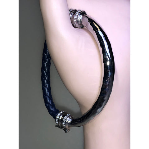 CHLOE + ISABEL navy braided leather n silver pavé hinged bracelet - B041