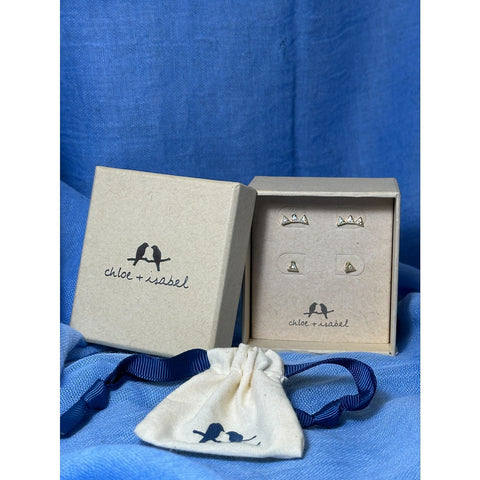 Minimalist with a modern edge, the Chloe + Isabel Pavé Triangle Stud Duo Earrings offer two sleek stud styles in one versatile set. Featuring shimmering pavé-set crystals in clean geometric triangle shapes, this duo includes both petite triangle studs and slightly larger bar-style triangle accents for effortless mixing and matching.