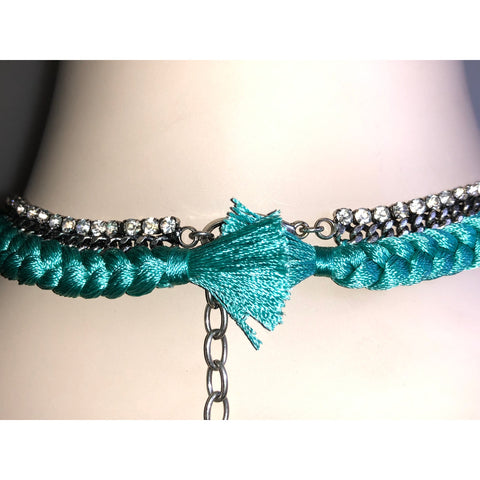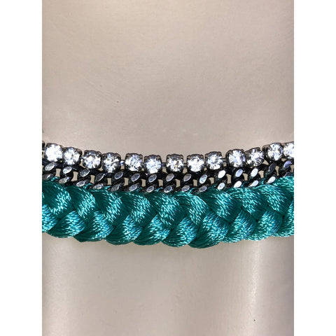 CHLOE + ISABEL turquoise satin braided crystal choker - N081