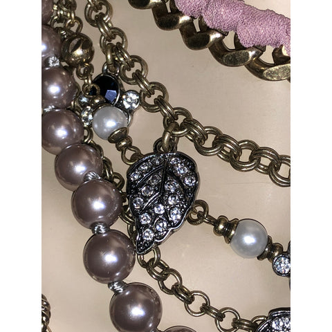 CHLOE + ISABEL vintage regency pearl n crystal multi-layer statement necklace - N128