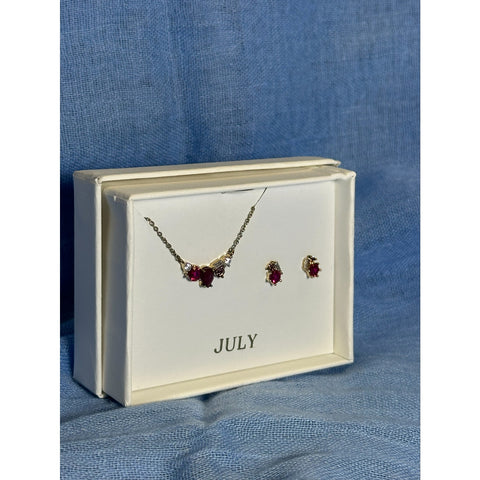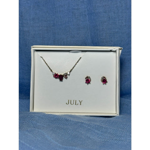 Inspired by the lush beauty of spring, the July Petits Bijoux set celebrates the vibrant ruby — July’s birthstone. The necklace features an elegant cluster of faceted ruby-red stones, a marbled malachite-style centerpiece, and sparkling crystal accents that catch the light beautifully. Matching stud earrings mirror the design for a cohesive, sophisticated look. Each piece is set in a warm gold-tone finish for timeless appeal.